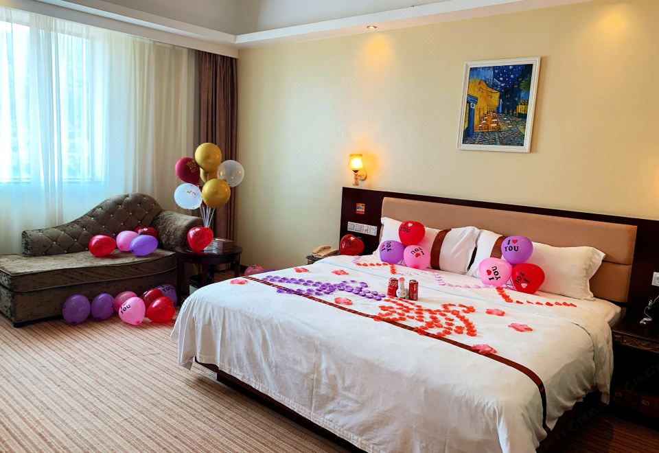 2020年翻新,酒店位于縣城商業旺區龍母大街,毗鄰德慶縣委縣政府等行政服務區,距離德慶主要旅游景點盤龍峽25分鐘車程,龍母祖廟約30分鐘車程。酒店內園林景色清靜優雅、旅客可休閑散步,步行5分鐘可到德慶龍湖公園,約8分鐘到市中心、食街超市,是您旅游、商務、娛樂、休閑的理想地方。酒店建筑外型雄偉獨特,建筑面積2.1萬平方米,甚具特色的大堂,夠高夠寬,進口云石金碧輝煌,有龍母娘娘賜給的二龍爭龍珠造形生動并作酒店LOGO,龍母文化氛圍濃厚,大堂東面高仿真龍母像,可供賓客參拜。正門水簾還有燦爛的五顏六色的杜鵑花,供您拍照留念。客房房型較多,設計獨特豪華、天花高、設有特色長臺兼備行李臺、書臺、梳妝臺供賓客放電腦、手袋及辦公卓卓有余,空間寬闊實用,比一般的行李架好用。衛生間設計高雅,私隱度高,適合帶小孩的家庭入住。豪華房配置美國名牌2米寬大床,享受人生。高層客房盡觀西江美景,20樓為風光美麗極豪華尊貴價格相宜的總統套房,歡迎您入住。酒店設有大型會議廳、宴會餐廳,同時容納數百人用餐。中餐設有豪華大包間,直徑4.2米自轉大圓臺,可供20多位貴客享用龍珠大廚馳名招牌菜和當地特色菜。酒店龍珠KTV有先進的音響和獨特的裝修,還有您意想不到的優惠等您光臨;還設有沐足桑拿、棋牌室供您享用。酒店還設有地面車場寬大,給自駕的朋友帶來方便。