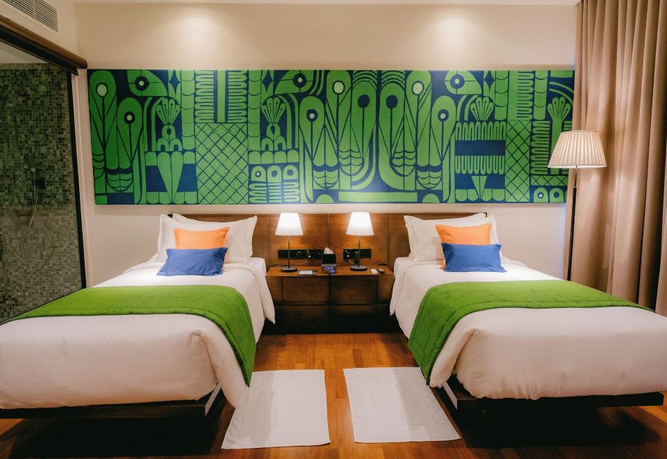 享有花园景致的双床间 - 带阳台