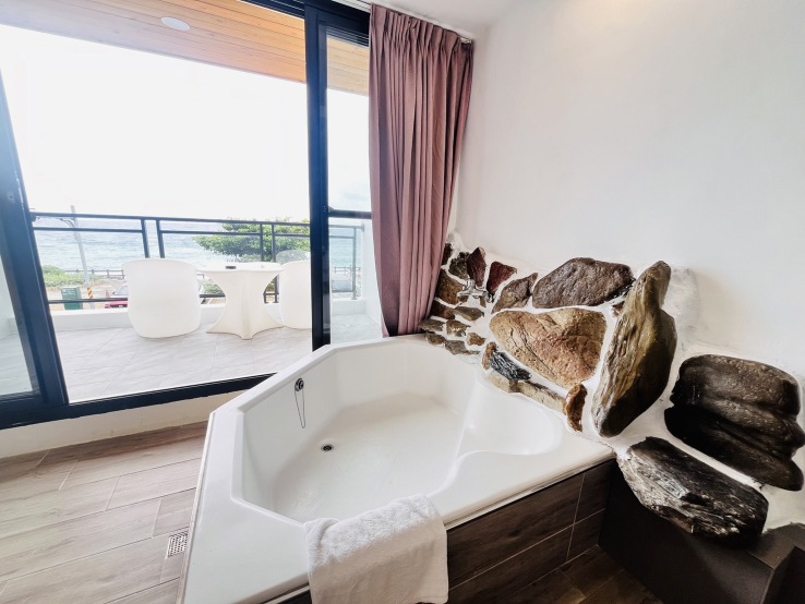「垦丁民宿.岩手旅店」位于船帆石南边,正面对船帆石海域, 楼下外观采用非常大胆而创新的设计,非常的显眼,路过绝不会错过。楼上是全新整修完工的海景民宿,经由设计师的精心点缀,布置非常有设计感,而且房间很宽敞,面海的景观也很棒 ,二楼还有面海的泡澡浴缸喔。入住岩手旅店让你同时享有方便的交通与美丽的海景。有着十分独特的外观造型,岩石窟的抢眼设计相当的显眼易找,同时,这里也是观望大海的最佳位置;若是选择面海房型,还可随时欣赏船帆石的美丽景色,就像是被大海拥抱般的,即使入夜后,依然伴随着美妙的海潮之声。「垦丁民宿.岩手旅店」提供二人及四人之房型,又以二人房居多,客房空间走的是多元化的异国风设计,缤纷精彩的内部规划,打造出间间各异的特色房型,兼具设计感与舒适性的格局空间,让每位入住的旅客,都能拥有最佳的渡假心情。
