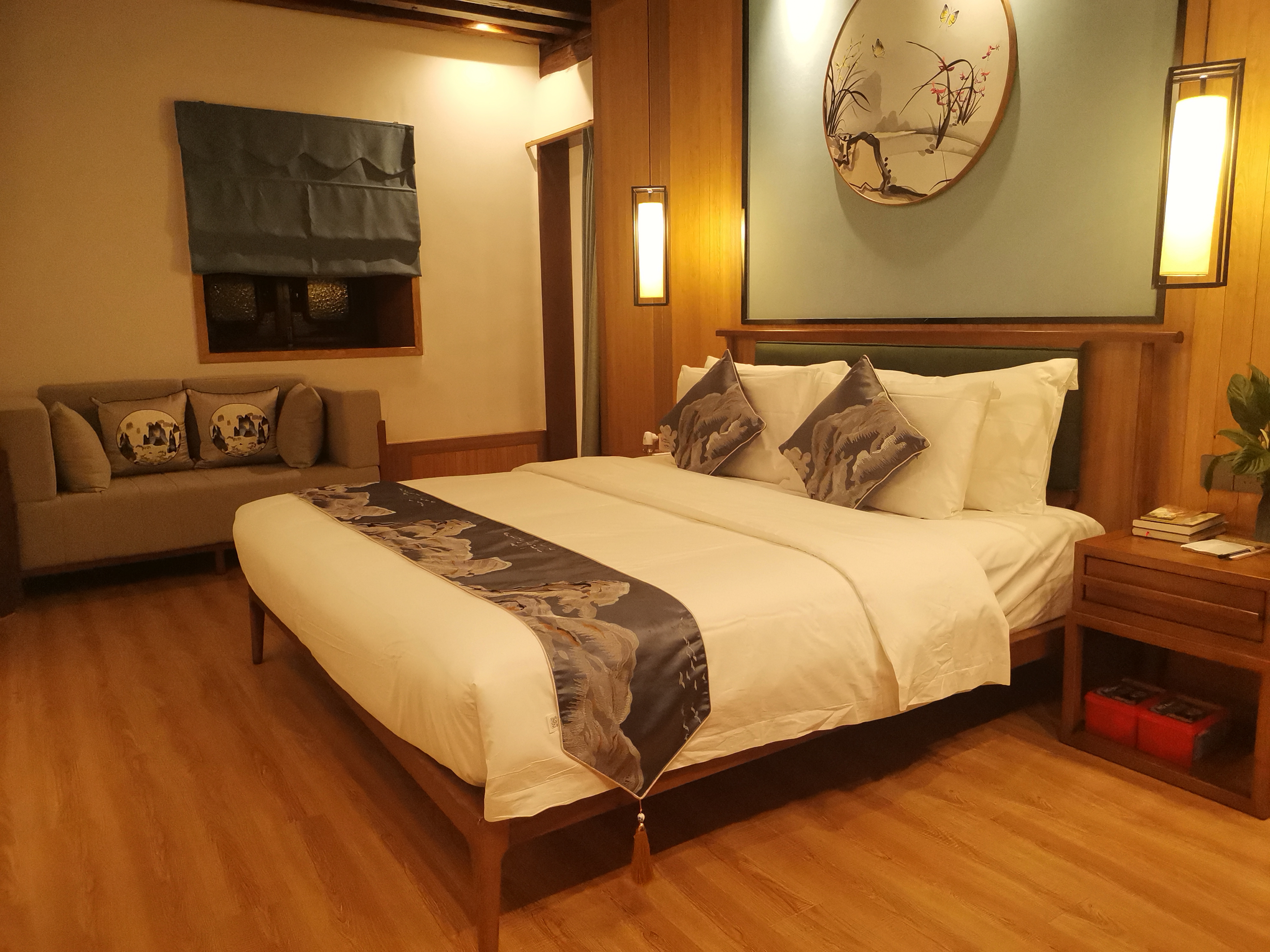 位于巍山古城拱辰楼东侧施家宅院和幽兰居古建筑内,是一座三坊一照壁四合五天井式建筑。宅院建于1946(民国35)年,建成至今已有75年历史,是巍山县文物保护单位,民国时期民居建筑代表之一。装修是以现代中式风格为主兼具了现代美与古典美的结合,环境优美房间宽敞美观,客厅、淋浴间卫生间干湿分离、部分房间设置有小天井且布局合理舒适,目前是巍山档次较高的精品客栈;如您来巍山旅游可以提供舒适的入住体验,是旅游、度假、休闲美好的选择。