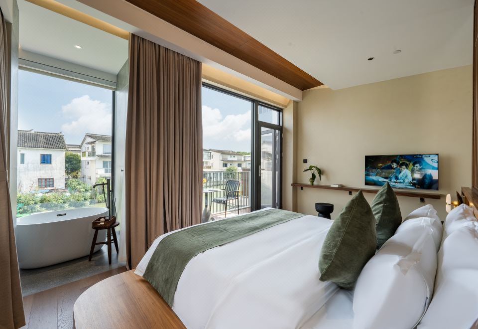 亲水露台湖景浴缸大床房