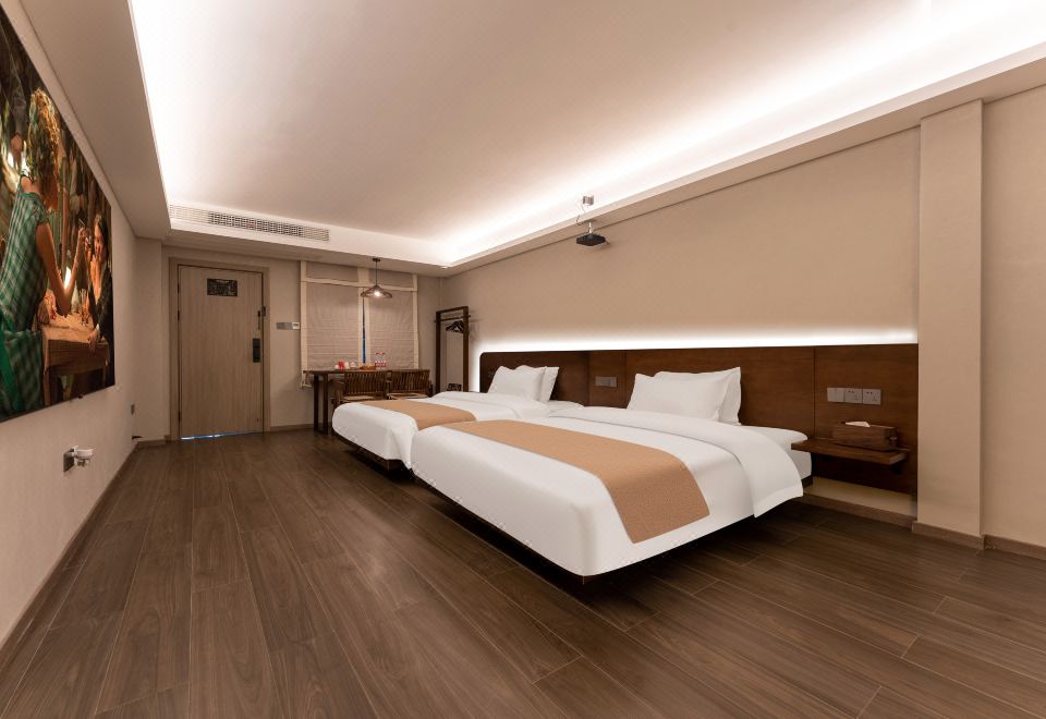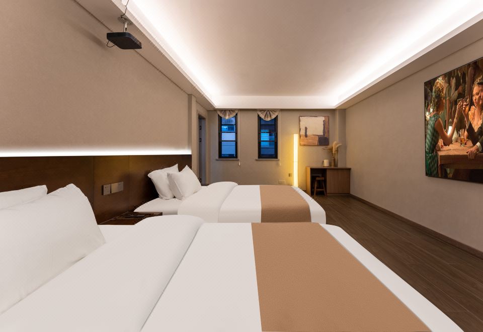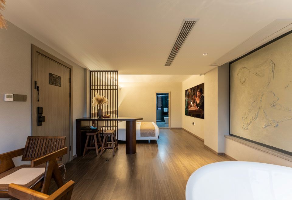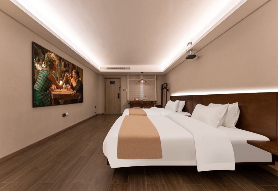 听雨·温泉双床房|私汤温泉泡池|巨幕投影|原木茶台