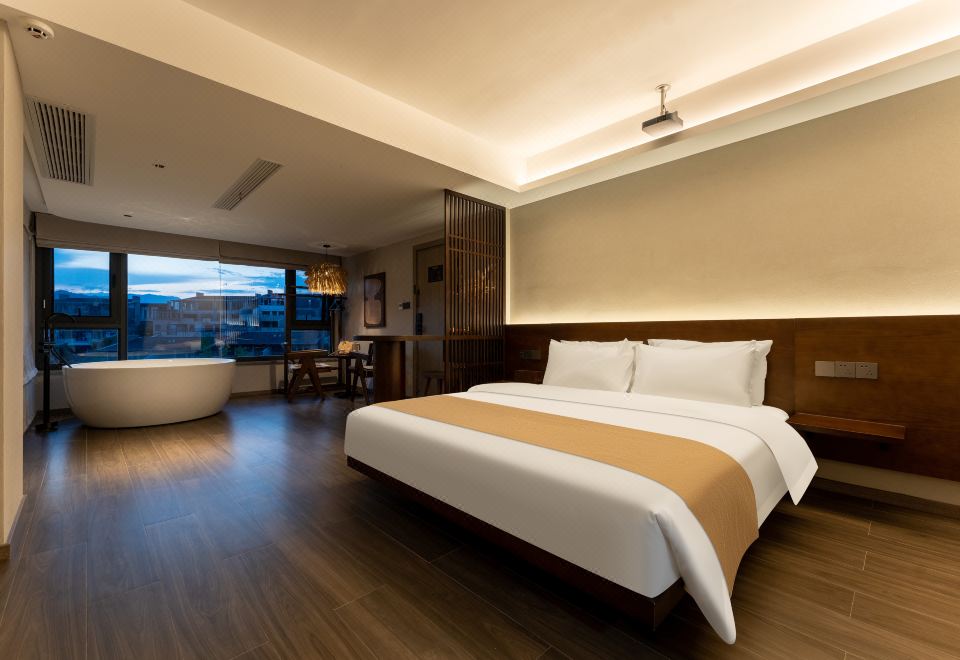 侯月·温泉观景大床房|观景浴缸|温泉浴|城景|投影仪