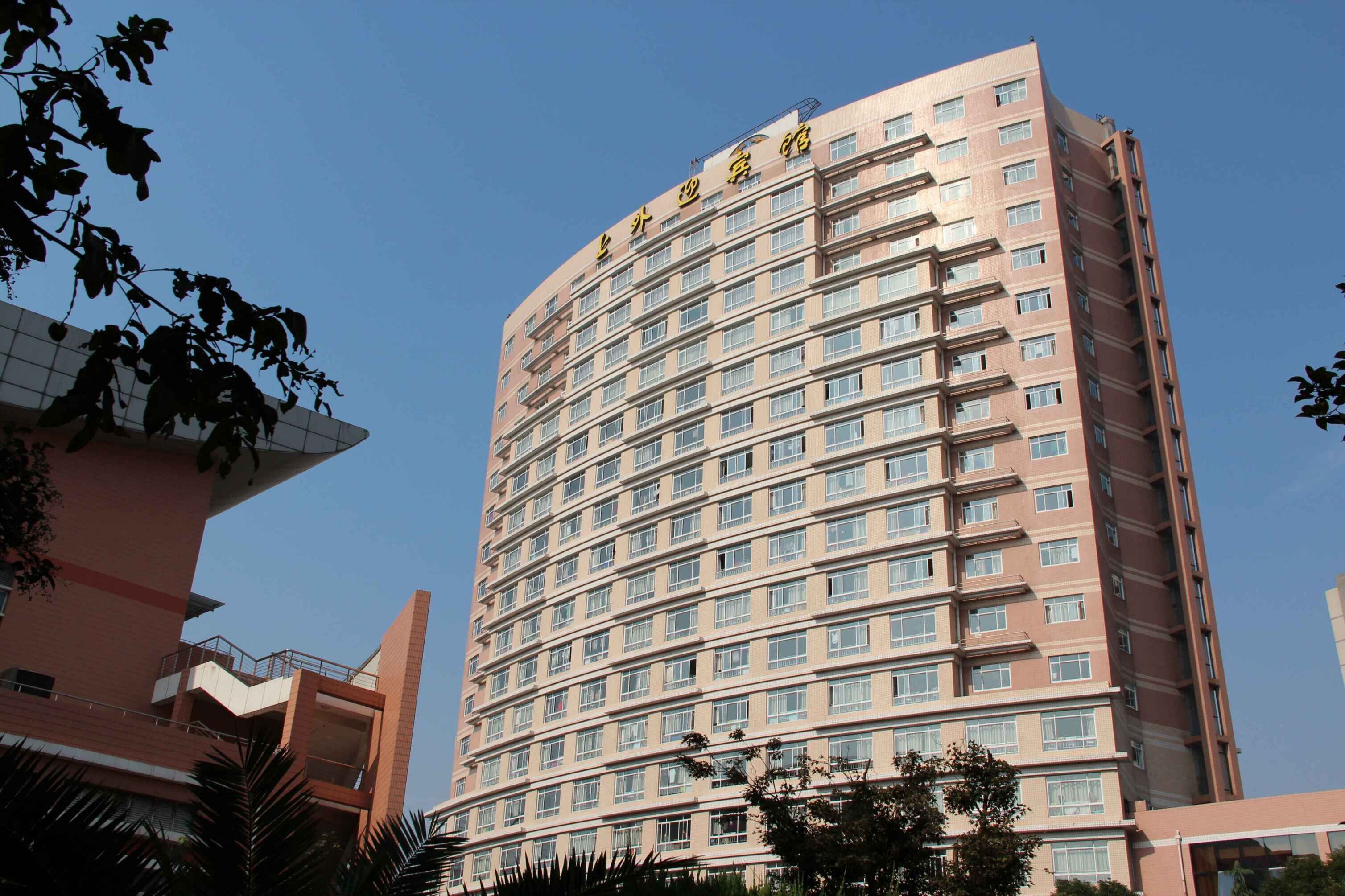 上海上外迎宾馆位于中国著名高等学府——上海外国语大学内,西靠内环高架和地铁轻轨3号线,南临鲁迅公园,四川北路商业街,多伦路文化街,虹口足球场,北临大柏树,五角场商业中心。从酒店步行500米左右即可到达虹口足球场“度假区快线”车站,乘坐“度假区快线”可直接抵达上海迪士尼乐园。交通十分便利。上海上外迎宾馆 全面升级后的客房产品更注重细节的优化, 满足商务、休闲、娱乐、餐饮的不同需要。拥有各类标准客房套,房间内有中央空调、有线电视、免费无线上网、市内直拨电话等设施。宾馆内有两个宴会厅和多个豪华包房;商务中心提供国际国内直拨电话、传真、复印、中英文打字等服务。此外,酒店还设有会议室、商场、美容中心、咖啡厅、河岸酒吧、自助银行、电子屏幕、健身中心、停车场等设施,是国内外宾客入住休息、举办商务会议、婚庆宴请学术研讨和国际文化交流活动的理想场所。