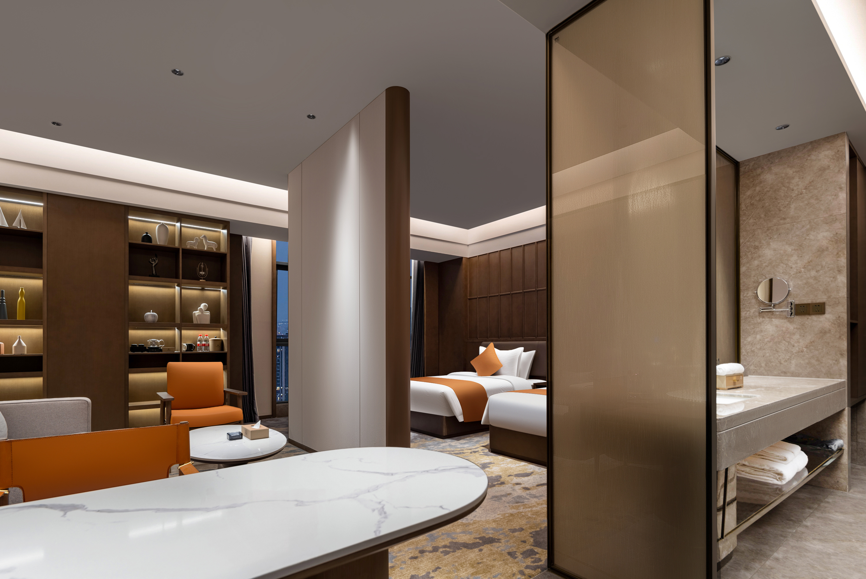 180°高空行政家庭双床房(小冰箱+深睡零压枕+金可儿护脊床垫+一室一厅动静分离)