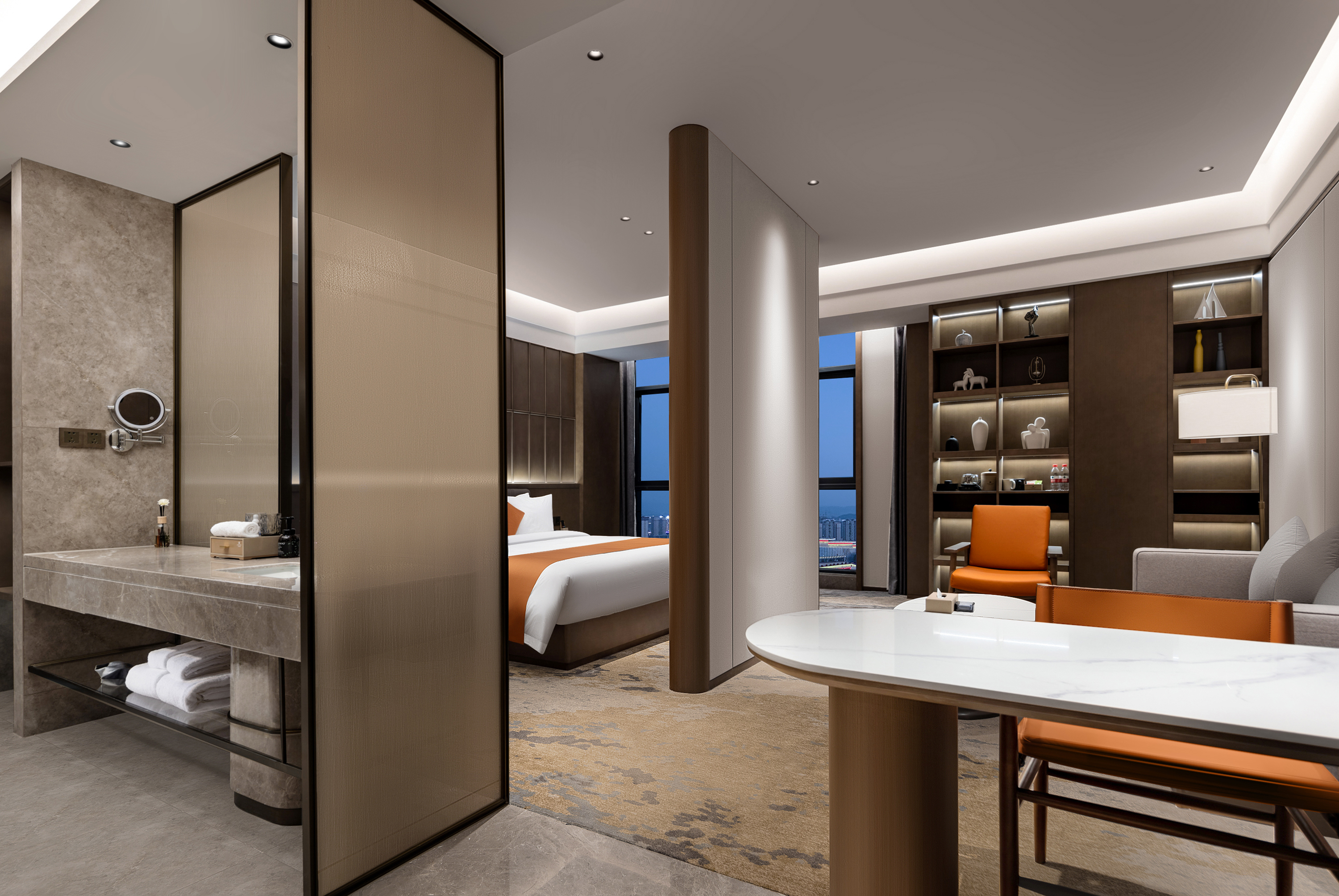 180°高空观景家庭大床房(小冰箱+深睡零压枕+金可儿护脊床垫+一室一厅动静分离)