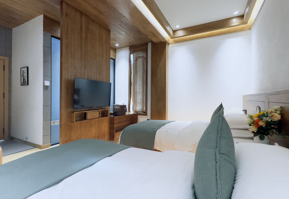 Deluxe Mountain-View Double Bed Room With Tub And Balcony (Real Fireplace + Floor Heating + Humidifier + Oxygen Generator + Mini Fridge)