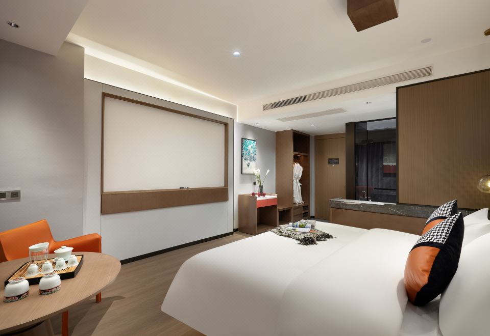 漫步景观影院大床房(迷你吧+亲肤床品+乳胶床垫+景观花园+足浴桶+中药包)