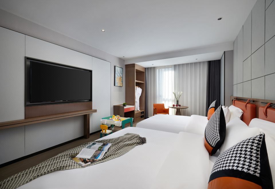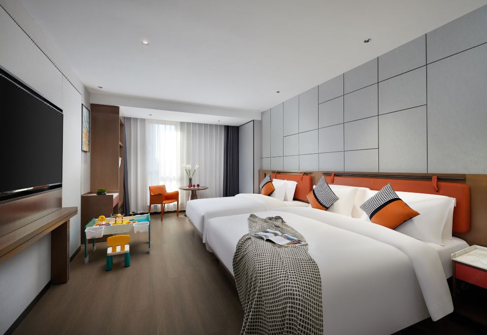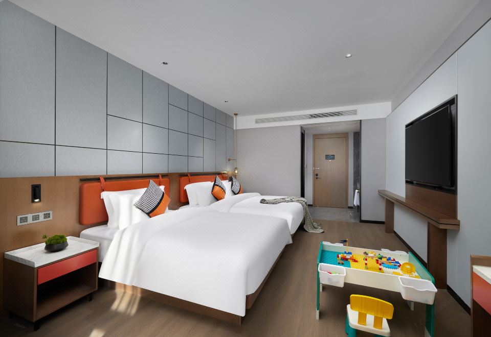 温馨亲子房(亲肤床品+乳胶床垫+景观花园+乐高)