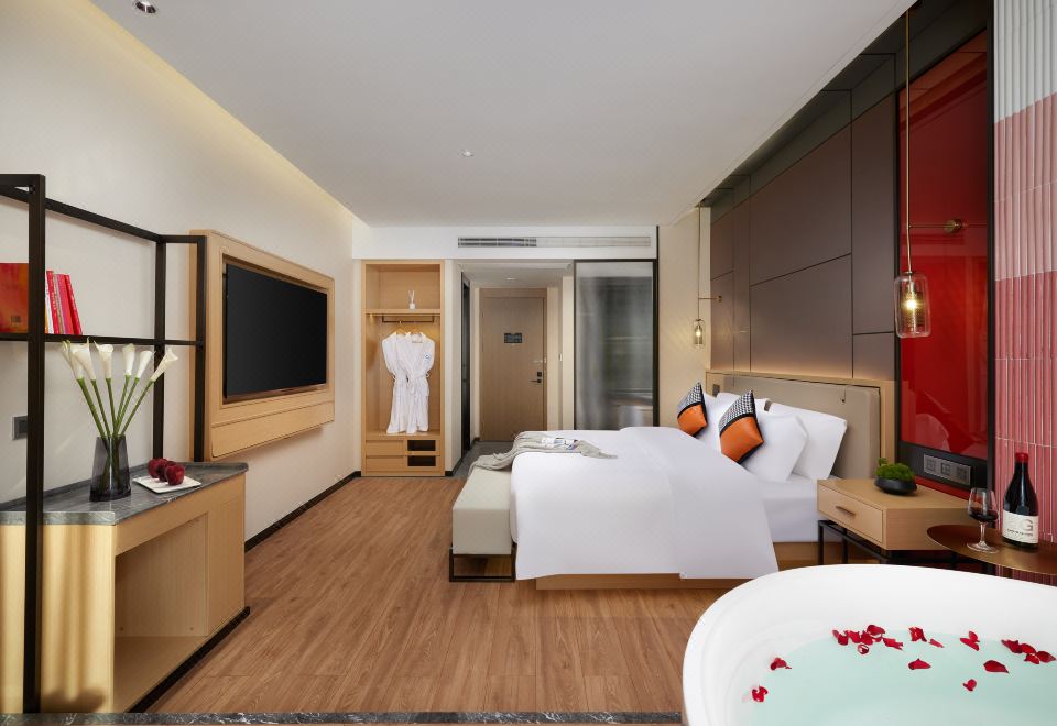 温馨情侣房(智能客控+迷你吧+静谧舒适+亲肤床品+乳胶床垫+景观花园)