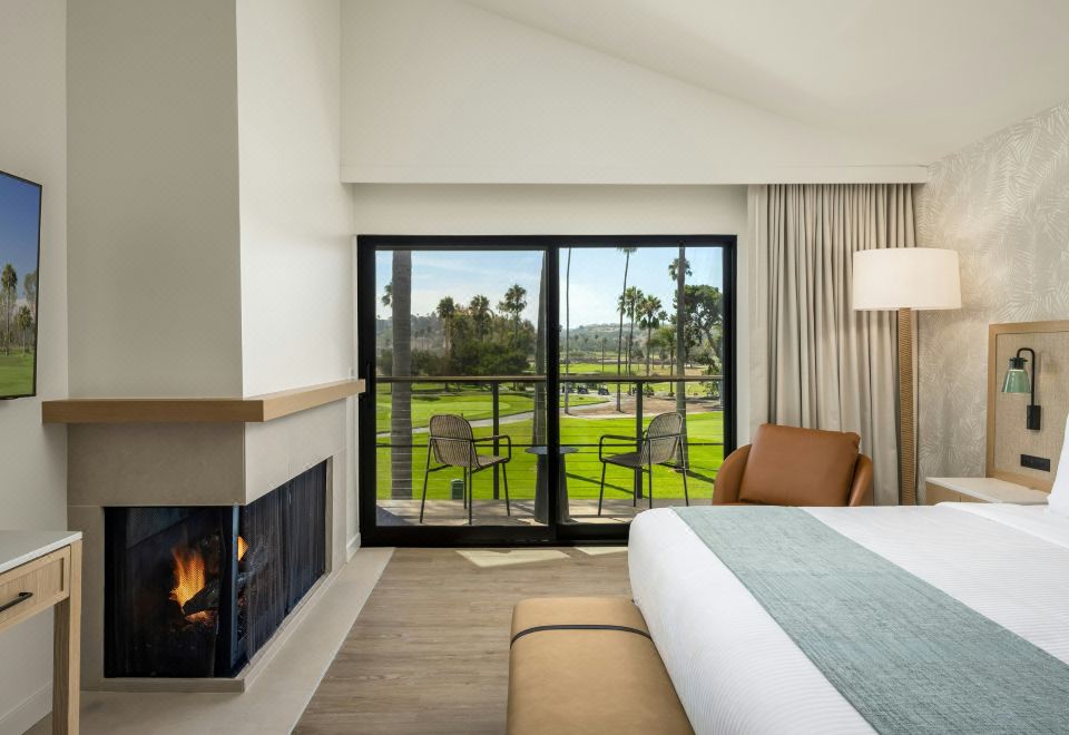 套房,带1张特大床和高尔夫景观及壁炉