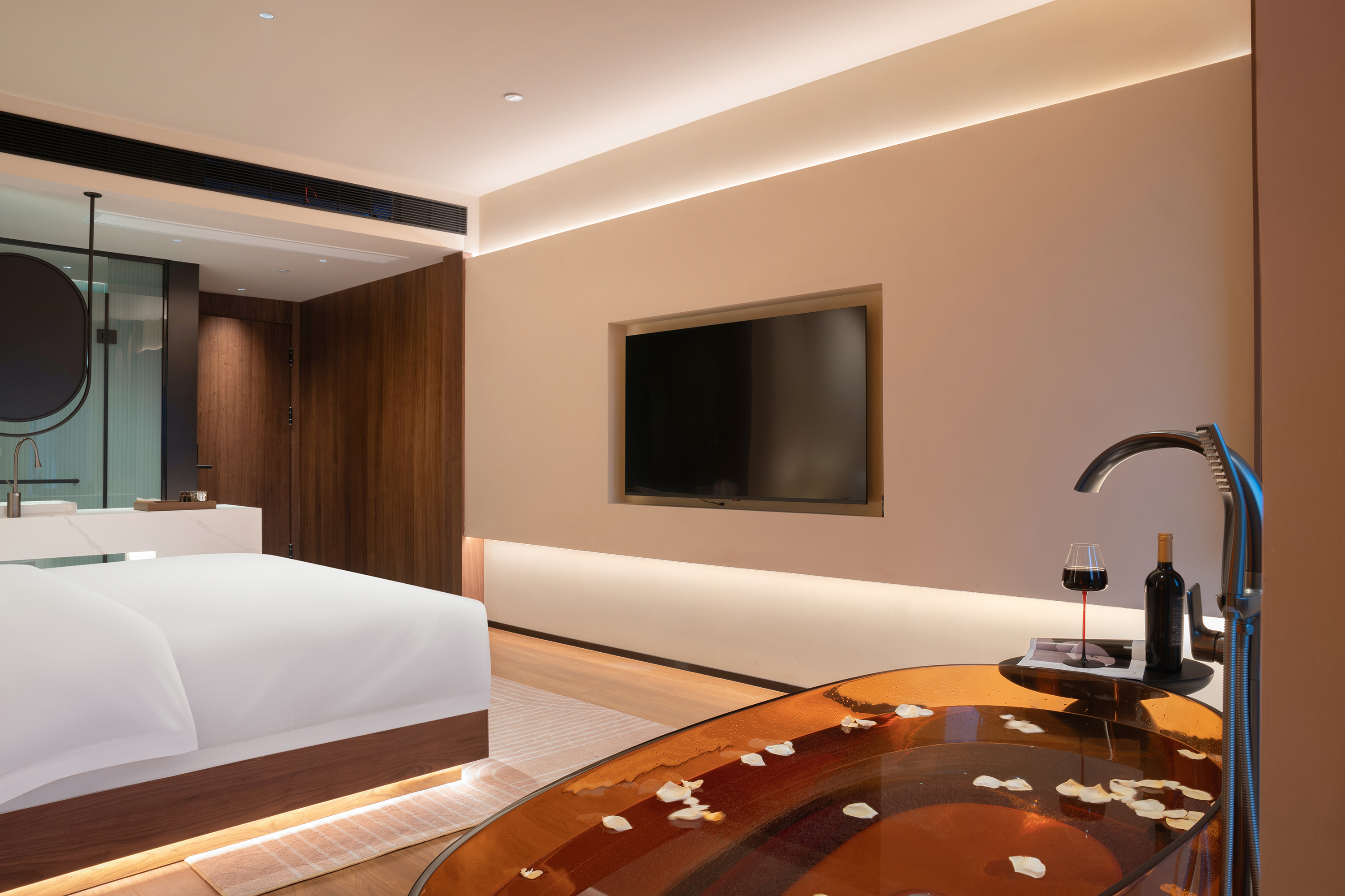 界外|亲密大床房+圆浴缸+巨幕投影+智能客空+冰箱