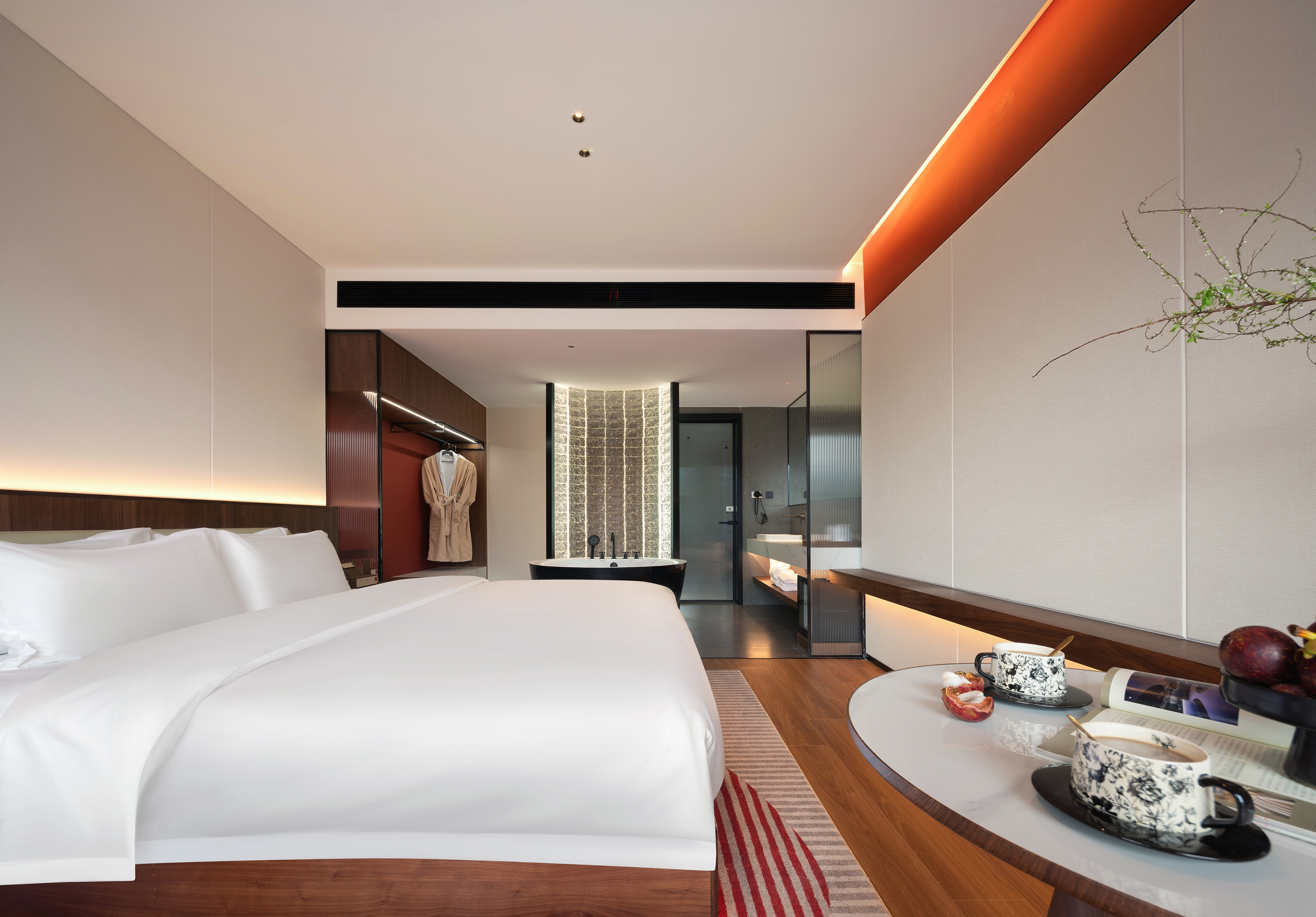 界外|云隐大床房+网红浴缸欧+雅澜床垫+迷你冰箱+智能