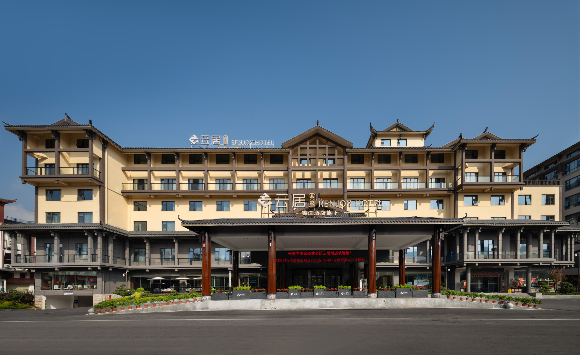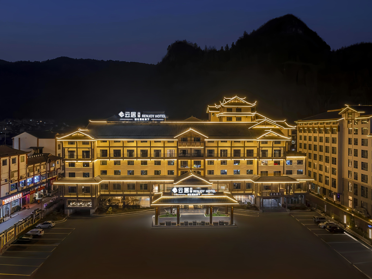 张家界国家森林公园云居酒店属于锦江酒店(中国区)中高端国风艺文度假品牌,酒店位于湖南省张家界市武陵源区武陵大道318号,拥有各类特色客房,拥有中餐厅及自助早餐厅、云吧、手工室、自助洗衣房、健身房、户外游泳池、户外羽毛球场,地上及地下停车场、拥有180人多功能会议室及会议展厅,满足客人入住出行及度假体验的需求。张家界国家森林公园云居酒店客房配有中英韩声控智能客控,高端床品、法国欧珑洗护系列、智能恒温马桶、浴缸浴袍等配备,为客人打造智能科技舒适的体验环境。清晏及嘉禧餐厅为宾客提供高品质健康饮食体验。张家界国家森林公园云居酒店体验活动丰富,可以体验中国传统活动及非遗传承:云居六艺及云居五兴互动性课程活动,丰富您的住店时光。 云居RENJOY HOTEL推崇中国古代文人雅士的隐逸哲学,从大自然与优越的人文理念中获取灵感,云朵、水流、花草、树木、潮汐、光影、文化经典、民俗风情……无不成为云居建筑与空间设计的灵感来源,从而构建自然、幽静、舒适的居停空间,表达唯美、空灵、深远的意境,让宾客片刻间融入其中,纵然身处繁华都市,亦有“悠然见南山”的美妙心境。 【景点】酒店紧邻张家界武陵源风景名胜区-东门,核心景区天子山,步行至景区东门。