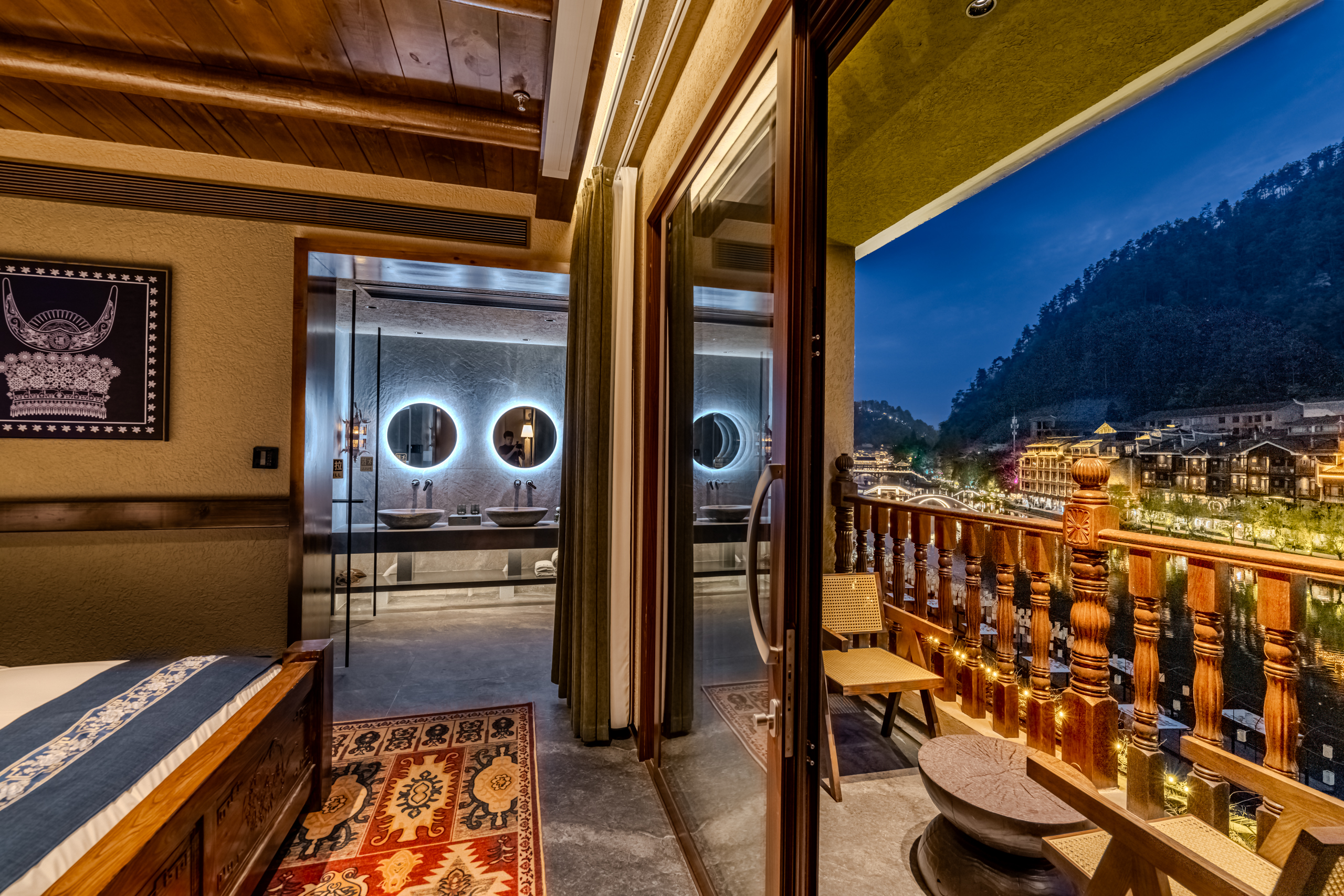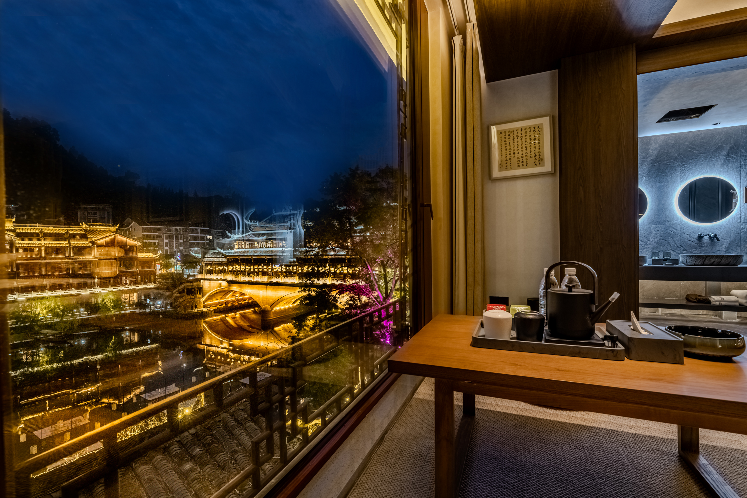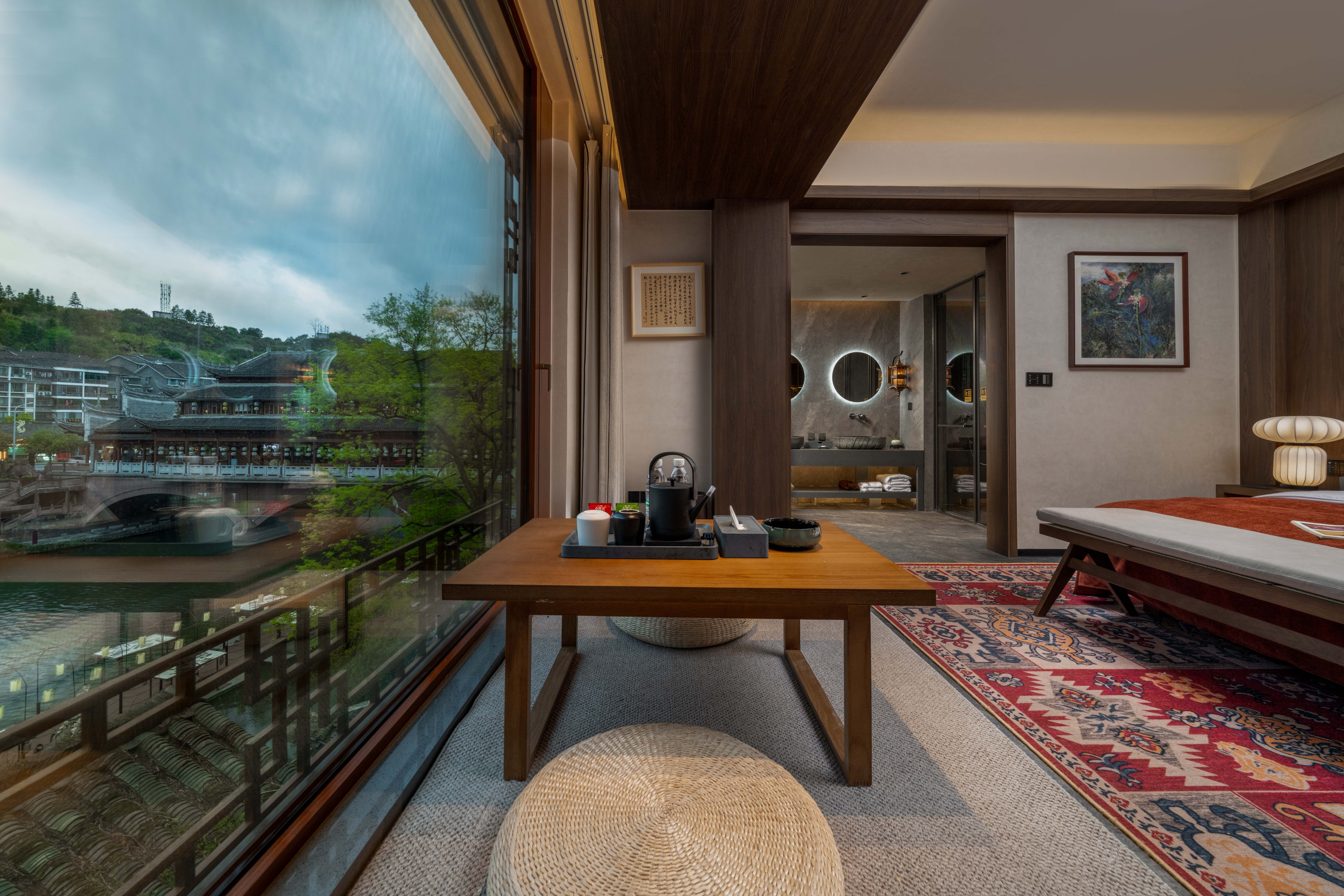 凤凰一泉江景·古桥云影·禅意设计师度假美宿(凤凰古城沱江店)预订电话:+8620-86009099