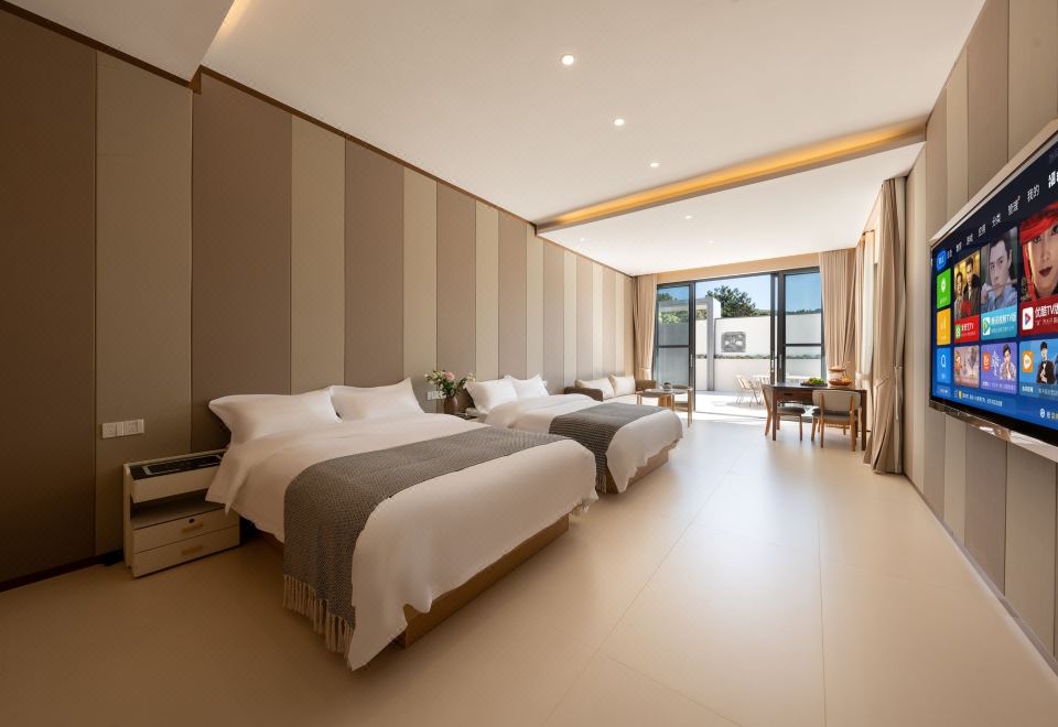火山日落观景豪华大双床房(观景露台+独立休息区+棋牌)