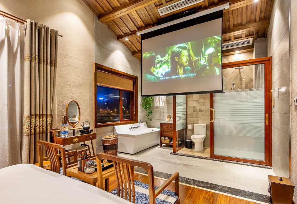 180°江景大床房|巨幕投影+观景阳台+中央空调+浴缸