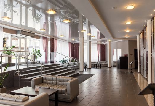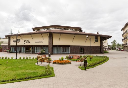 For guests are served buffet breakfast every morning. The two-storied Ucha restaurant, serving courses of Russian and European cuisines, can seat 450 guests at a time. The restaurant includes a bar, main hall with 200 seats, banquette hall with 150 seats, and 4 VIP halls. Conferences can be accompanied by different kinds of coffee breaks and buffets.