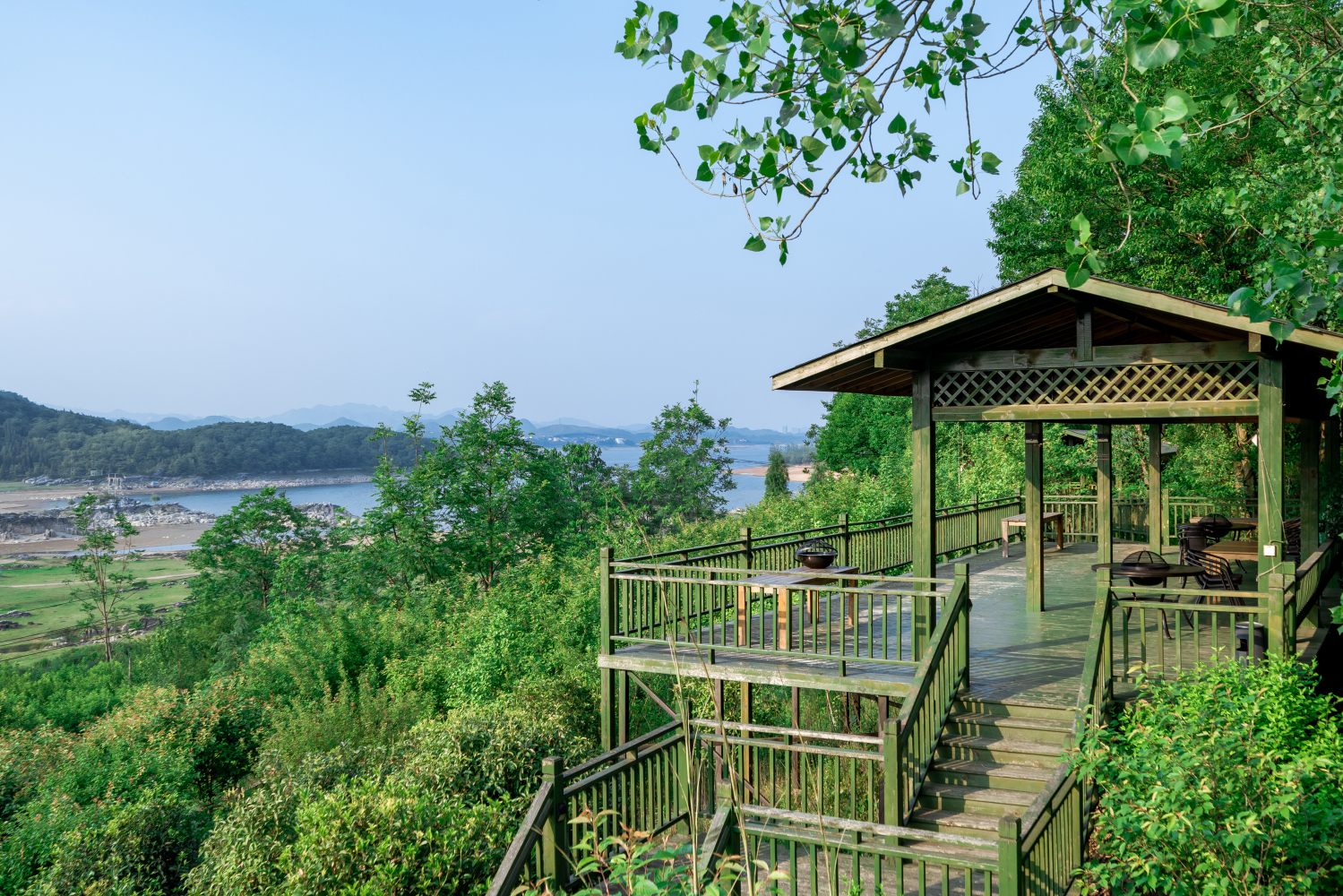 民宿室内视觉设计以自然元素为灵感,每间客房对应不同风格,以属地特色文化元素与自然风物为主要装饰。设计师全面扩大原始建筑的湖景麪窗洞,将湖景引入室内,更在阳台上打造玻璃洗浴空间,泡澡的同时,独享烟波浩渺。实木仓板手工拼合的各种客房家俱,增加了室内空间的自然亲和力与趣味性。莫兰迪色系的天然棉麻床品,佰草集洗护四件套,徕芬吹风机,百岁山矿泉水,每个浴缸房配备精油浴球,为每一位客人带来细腻质朴的感官体验。帅气的工业风大客厅里除了配置投影设备,让客人可以畅快地窝在沙发里看一场电影外,温暖的吧枱里玲琅满目地收藏了各种茶与茶具,热情地为每位住客免费提供精美的下午茶。引舍的餐厅:引食,引食大厨结合民宿特色和环境,打造多种不同的组合,为美食爱好者提供一场饕餮盛宴,还有主人用各种充满元气的山间野果泡制的佳酿。观景垂钓鱼塘,为所有的来客提供钓鱼渔具,享受垂钓的乐趣;休闲烧烤区域,配备麻将娱乐设备及精美的烧烤组合;草坪的天幕酒吧,民宿三楼的湖景天台酒吧,为夜幕降临后的民宿开启另一种生活方式~