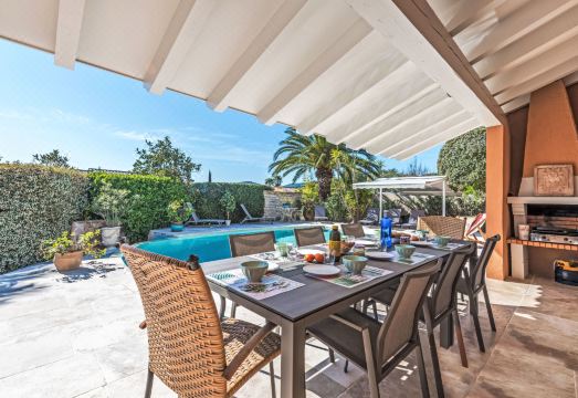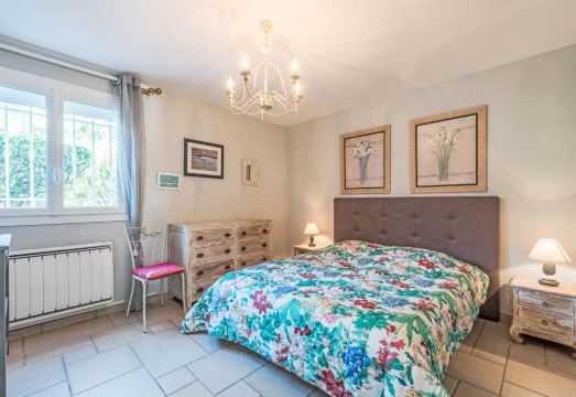 Gassin 10 km from Saint Tropez: Beautiful villa "Clos des Collines", 2 storeys. Outside the resort, 5 km from the centre of Gassin, in the residential district, 2.5 km from the sea, 2.5 km from the beach. Private: well-kept garden 900 m2, swimming pool (8 x 4 m, depth 100 - 200 cm, seasonal availability: 01.May. - 30.Sep.). Shop 2 km, supermarket 2 km, restaurant 2 km, bakery 500 m, bus stop "Font Mourier" 2.7 km, sandy beach "Les Marines de Gassin" 2.5 km. Marina 2.5 km, golf course (18 hole) 8 km, sailing school 2.5 km, tennis 5 km, cycle lane 500 m. Nearby attractions: Parc d'attractions Azur Park 2 km, Port Grimaud 5 km, Plages de Pampelonne 13 km, Sainte Maxime 14 km, Cannes 84 km, Nice 110 km. Well-known lakes can easily be reached: Lac de Sainte Croix 89 km. Hiking paths: Massif de l'Esterel 50 km. Please note: car recommended. The keys‘ handover takes place by the agency HHD Interhome in Gassin, 2 km. 5-room villa 140 m2 on 2 levels. Spacious and bright, very beautiful furnishings: living/dining room with TV (flat screen). Exit to the terrace. 1 room with 1 french bed (160 cm, length 200 cm), shower/WC. Exit to the garden. 1 room with 1 french bed (160 cm, length 200 cm), TV (flat screen). 1 small room with 1 x 2 bunk beds (90 cm, length 190 cm). Kitchen (oven, dishwasher, 4 induction hot plates, toaster, kettle, microwave, freezer, electric coffee machine, Capsules for coffee machine (Nespresso) extra). Shower, sep. WC. Upper floor: 1 room with 1 french bed (160 cm, length 190 cm), shower/WC. Electric heating, air-conditioning. Large terrace 30 m2 partly roofed. Terrace furniture, electric barbecue, deck chairs (8). Facilities: washing machine, hair dryer. Internet (WiFi, free). Parking (3 cars). Please note: smoke alarm. 83065000284BD