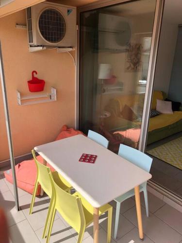 Studio/f1Bis à 50 m de la Plage坐落于滨海阿热莱斯的Argeles Plage,拥有空调、阳台和市景。这家住宿享有海景和山景,距离中心海滩(Centre Beach)有2分钟步行路程。