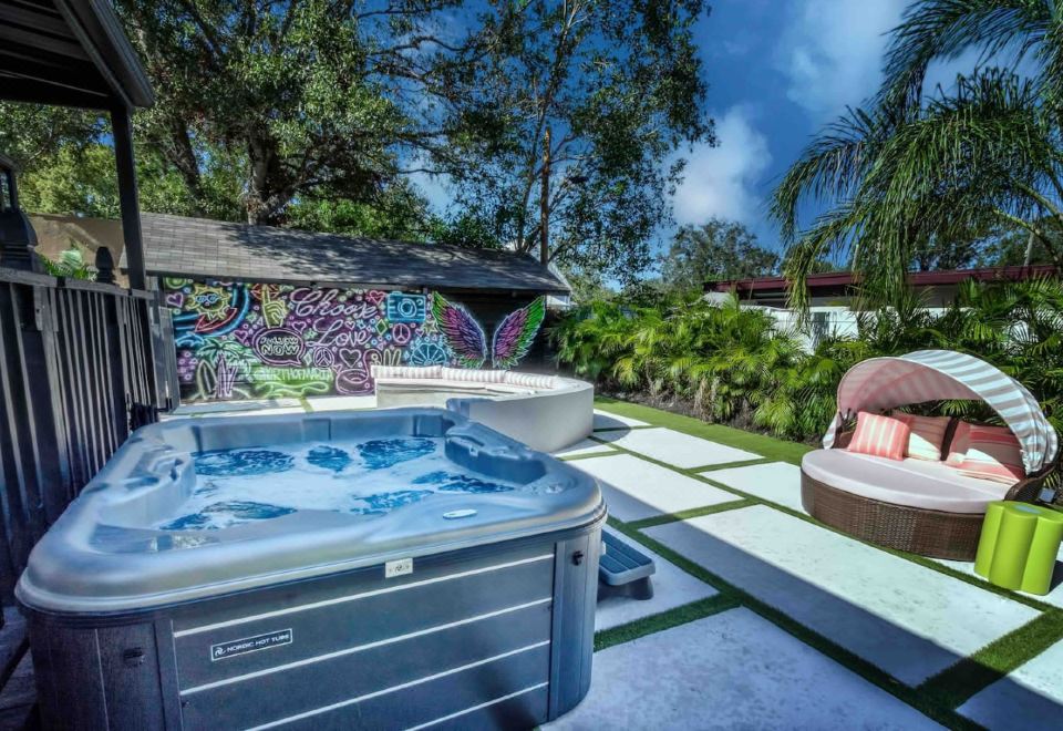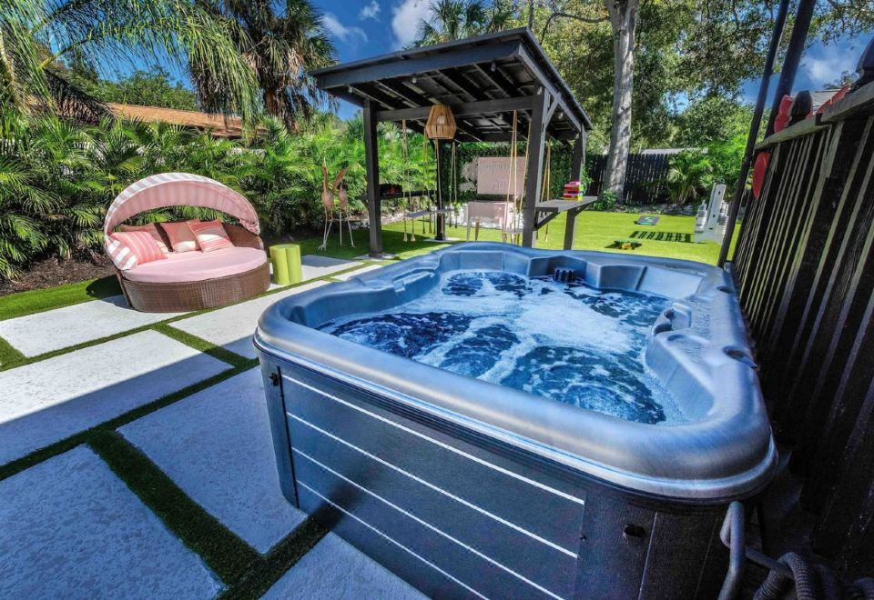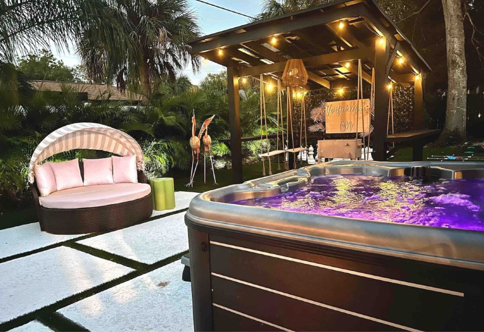 独特主题,热水浴缸,泳池,和趣味活动—异想天开的绿洲