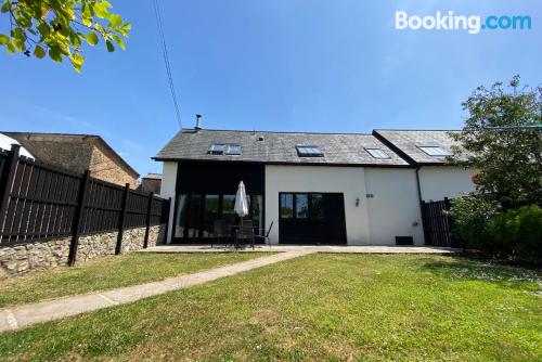 这家度假屋配备DVD播放机,提供带冰箱、洗碗机和烤箱的厨房、带休息区和用餐区的起居室、2间卧室以及2间带淋浴设施和浴缸的浴室。这家度假屋还提供平板电视以及2间带免费洗浴用品的浴室。