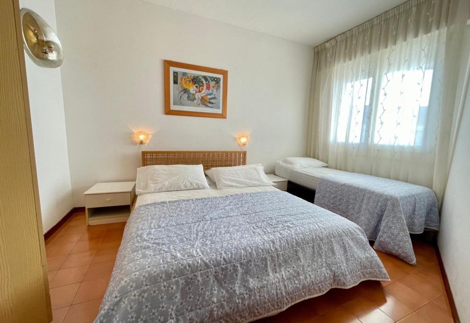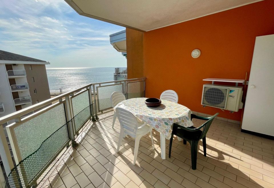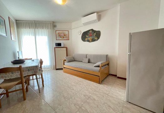 Lovely one-bedroom flat for up to five guests located on the 6th floor of a seaside building with lift, only 110mt to the beach. The apartment features a terrace overlooking the sea. It is formed of a living/dining room with a single sofa bed and a foldaway bed, a separable kitchenette, a bedroom with a double bed plus a single bed, and a complete bathroom with a shower box. Equipped with a washing machine, one uncovered parking spot, and a reserved beach place ( 1 umbrella, 1 deck chair, 1 sunbed). A/C is available at an additional cost (check below).°Photos are generic and representative of the accommodation type (furniture, décor and colors may vary)