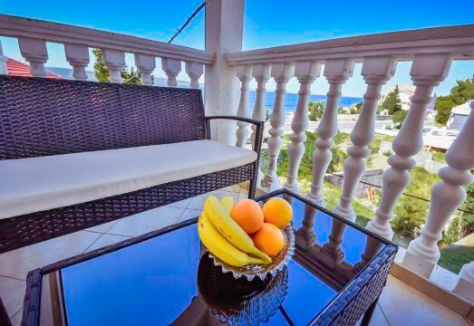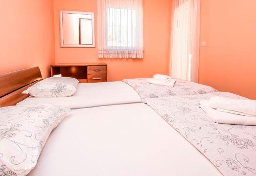 3-family house. 500 m from the centre of Starigrad-Paklenica, in a sunny position, 50 m from the sea, 50 m from the beach, road to cross. For shared use: barbecue. In the house: internet access. Parking at the house on the premises. Shop 500 m, restaurant 150 m, bus stop 1.8 km, pebble beach 500 m, concrete beach 50 m. "Nela", 2-room apartment 47 m2 on 1st floor. Living/dining room 20 m2 with satellite TV (flat screen), air conditioning. Exit to the terrace. 1 room with 2 beds (90 cm, length 200 cm). Exit to the loggia. Open kitchen (4 hot plates, oven, dishwasher, microwave, electric coffee machine). Shower/WC. No heating option. Terrace 10 m2, roofed. Terrace furniture, covered balcony. View of the sea. Facilities: washing machine. Internet (WiFi, free).