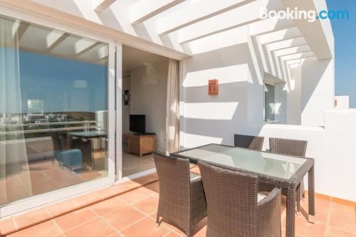 2214-Modern Apt with Private Beach坐落于卡薩雷斯,配有室外泳池,享有花園景。這家空調住宿距離拉杜克薩高爾夫球場有14公里,為客人提供免費WiFi,內部提供私人停車位。