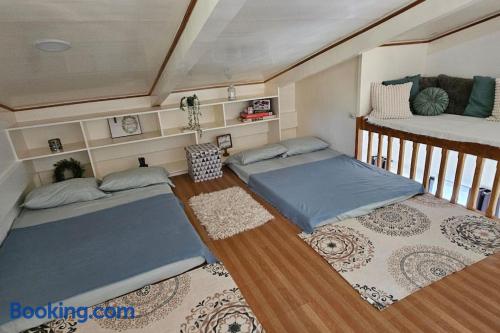 这家空调度假屋配有1间卧室、起居室、带冰箱和电热水壶的设施齐全的厨房以及1间带坐浴盆和淋浴设施的浴室。1间浴室提供拖鞋。