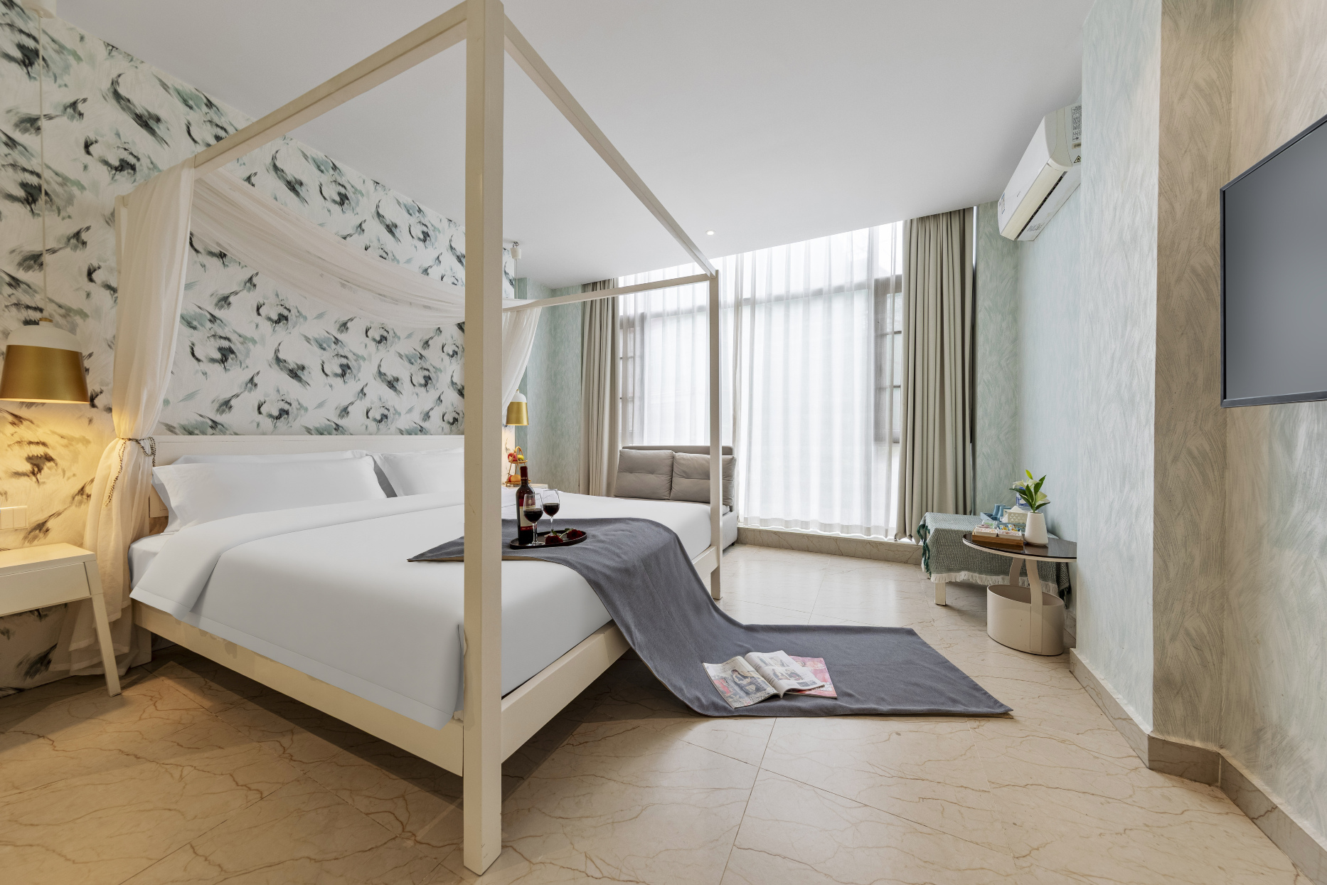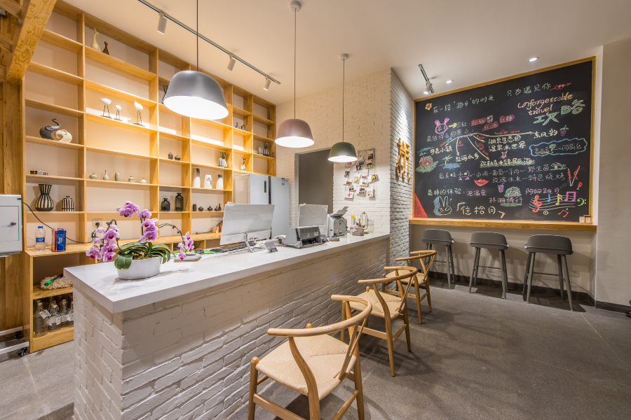 酒店设计不传统,针对不同年龄段顾客的喜好,设计了多种风格和房型。房型有浪漫大床房、双床标准间及跃层loft ,风格大体偏向北欧风,其中还有法式、新中式、工业风、波普风、日式榻榻米等多种房型。房间干净整洁、空调、电视等设施齐全。四楼跃层loft 不仅有独立客厅,还带有阳台和遮阳棚,是家庭出游首选。每个房间都带独立WiFi ,网速流畅从不卡阻。每个床垫都会呼吸,酒店用品不将就,卫生洁具选用箭牌、家具大部分从宜家采购,不用担心甲醛超标。每个床垫和床品均有国家权威质量认证,从无数床垫中选中了软硬度适中、受众面最广的慕思床垫,床品80织,并且一客一换、干净卫生。阳光微风语 花草丛中笑 ,一楼大厅的后院,有一片被植物所包围的休闲区域,你可以与亲友或爱人围坐在一起,沐浴阳光、享受微风、无所顾忌、自由交谈。看电影0元却过瘾,大厅有照片打印机和投影仪,顾客可以直接将美美的照片通过打印机打印出来直接带走,也可放在酒店做纪念。酒店会不定期播放电影,有100寸的幕布进行放映。饮茶品香 读书交友 这里更适合你。酒店有上百本畅销书籍可供顾客借阅,大厅有多组休闲沙发桌椅,你可在此喝茶聊天、看书发呆、举办“读书会”、交到志同道合的朋友……