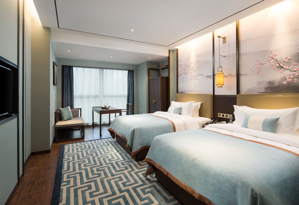 雅悦礼居双床房(全景落地窗+摩天轮城景+古色茶台)