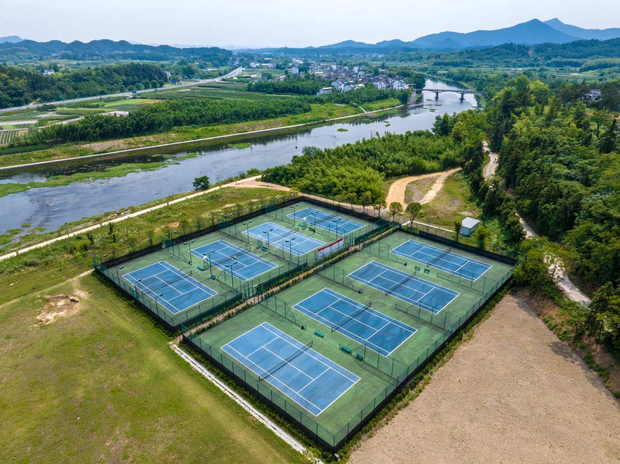 酒店位于安徽省黄山市之历史名城歙县桂林镇,酒店毗邻215省道,距离黄杭高速、溧黄高速入口仅10分钟车程,距离高铁绩溪北站、歙县北站、黄山北站及屯溪国际机场均在半小时车程左右,地理位置优越。酒店拥有中式风格客房多间,设有标间、大床房、亲子房、套房;酒店有符合国际比赛标准的室内网球场4片,室外网球场地8块,经常承办全国性各类网球赛事以及网球培训教学等活动。酒店会议室功能齐全,可以承接100人左右的会议,酒店有可供百人同时就餐的餐厅,根据需要提供自助餐或者徽菜为主的特色餐饮服务。酒店周边羣山环绕,溪水潺潺,云雾袅绕,蛙鸣鸟啼,自然生态优美,是自驾游、亲子游及各类团建、会议、研学、夏令营等理想目的地。酒店距离周边景区交通便捷,歙县古城、渔梁景区,龙川景区,雄村景区,卖花渔村景区都在30分钟车程左右。入住酒店可以放松心情,亲近山水,体验自助烧烤、露营、篝火晚会、垂钓各类娱乐活动。是您体验皖南自然山水及徽派文化的优选地。酒店全体员工将以热情的服务欢迎您的到来。